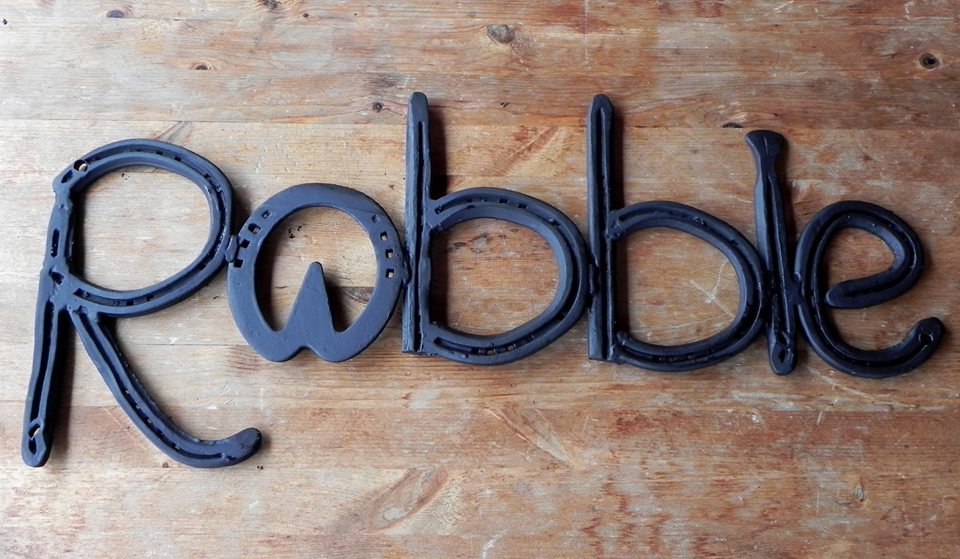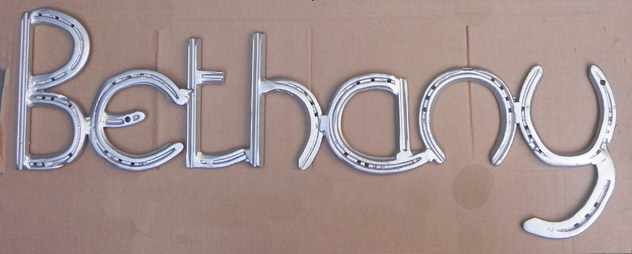Horseshoe name tags, made from reclaimed horse shoes or your own to make it more personal. available in a range of colours with drilled holes at either end to be screwed to the wall or stable.